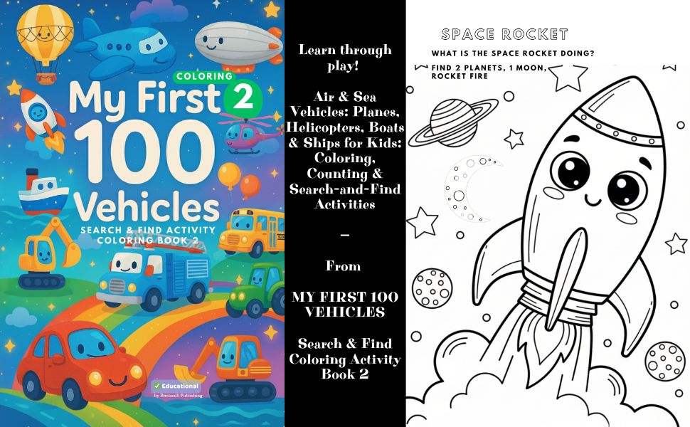 Air & Sea Vehicles – Search & Find Coloring Activity Book 2 is a charming activity book that introduces young learners to the world of flying and floating vehicles. From airplanes and rescue helicopters to sailboats, submarines, and big ships, each page invites children to explore, count, and color.